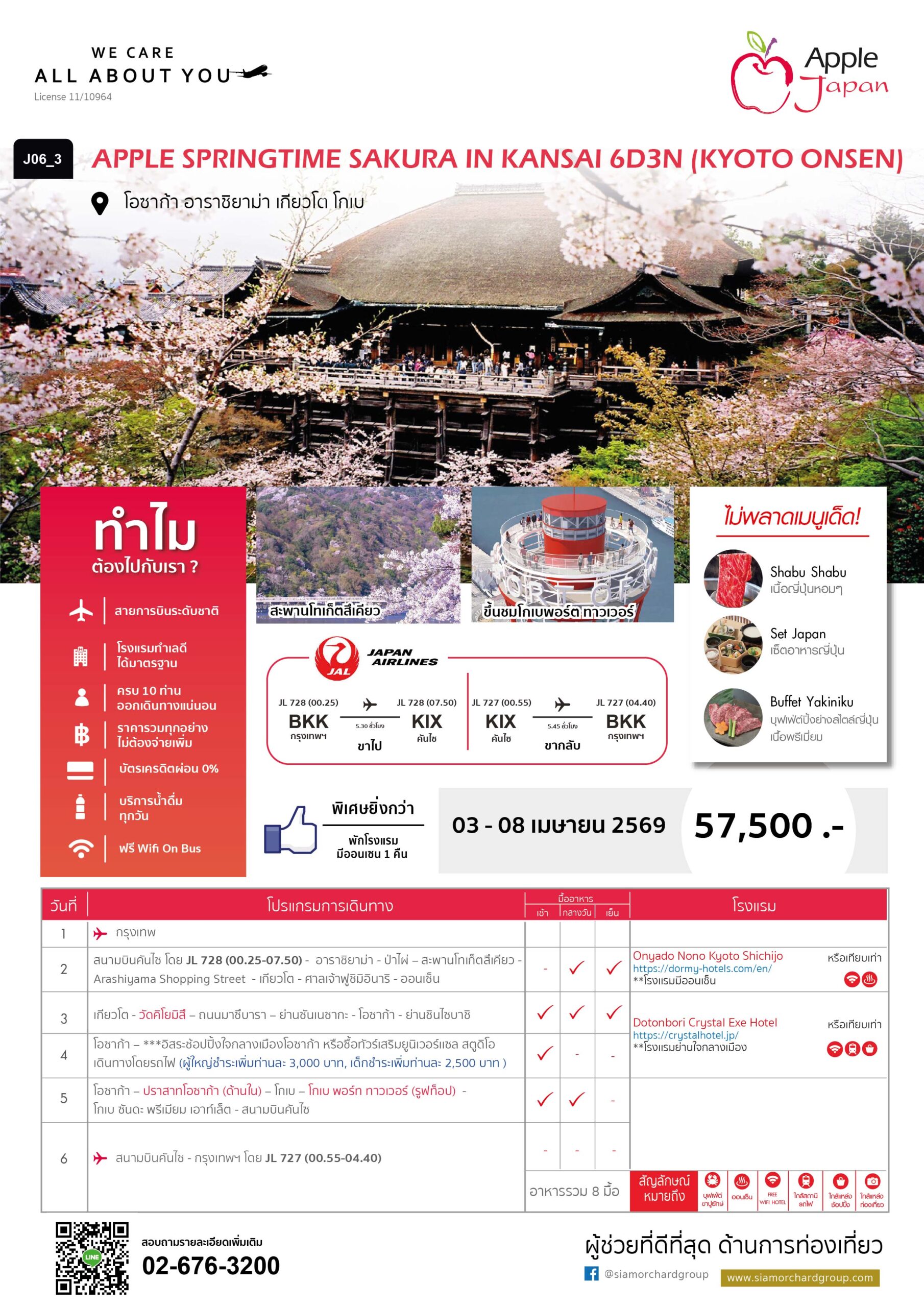 ทัวร์ญี่ปุ่น เดือนเมษายน 2569 APPLE SPRINGTIME SAKURA IN KANSAI 6D3N (KYOTO ONSEN)