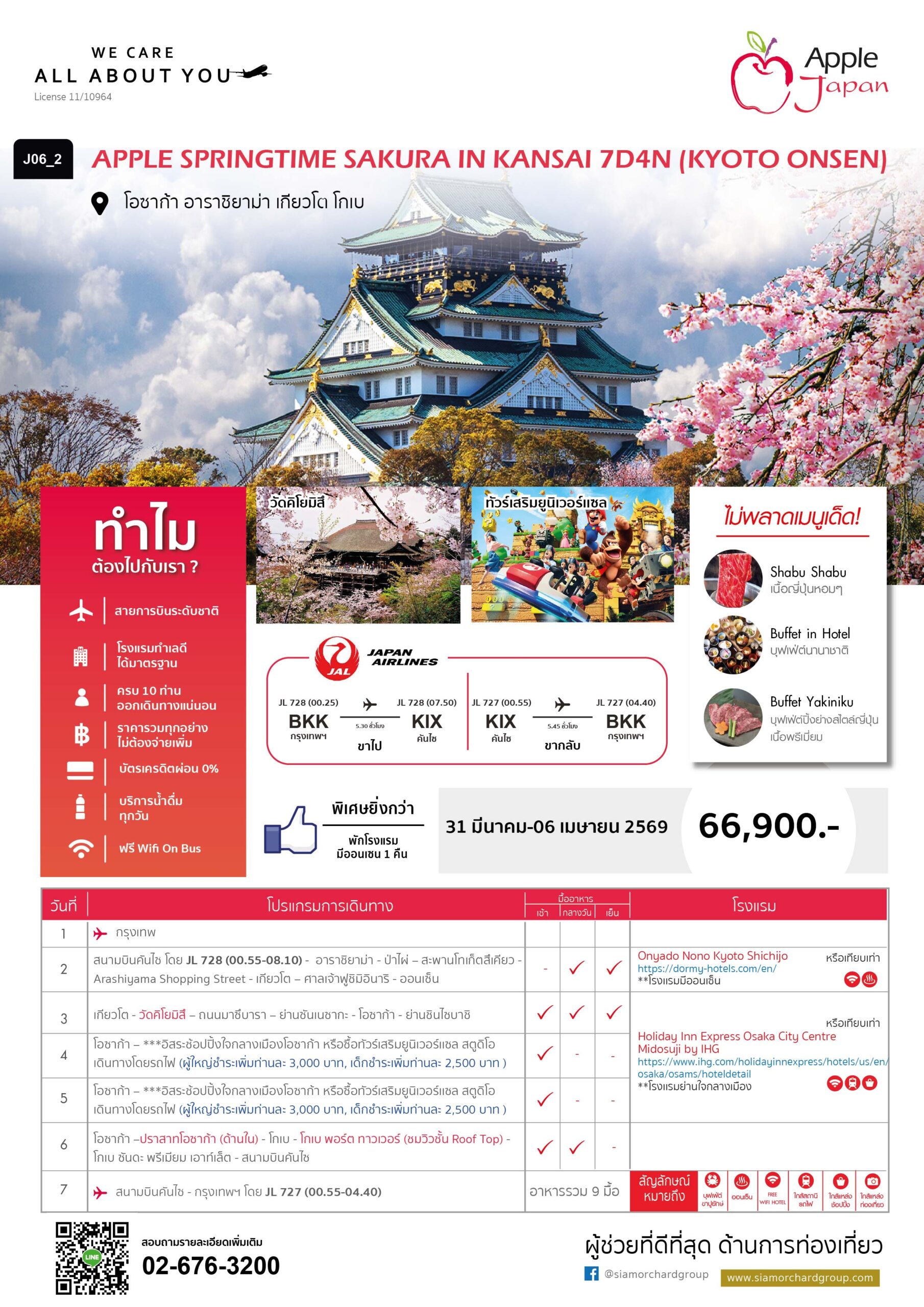 ทัวร์ญี่ปุ่น เดือนมีนาคม 2569 APPLE SPRINGTIME SAKURA IN KANSAI 7D4N (KYOTO ONSEN)