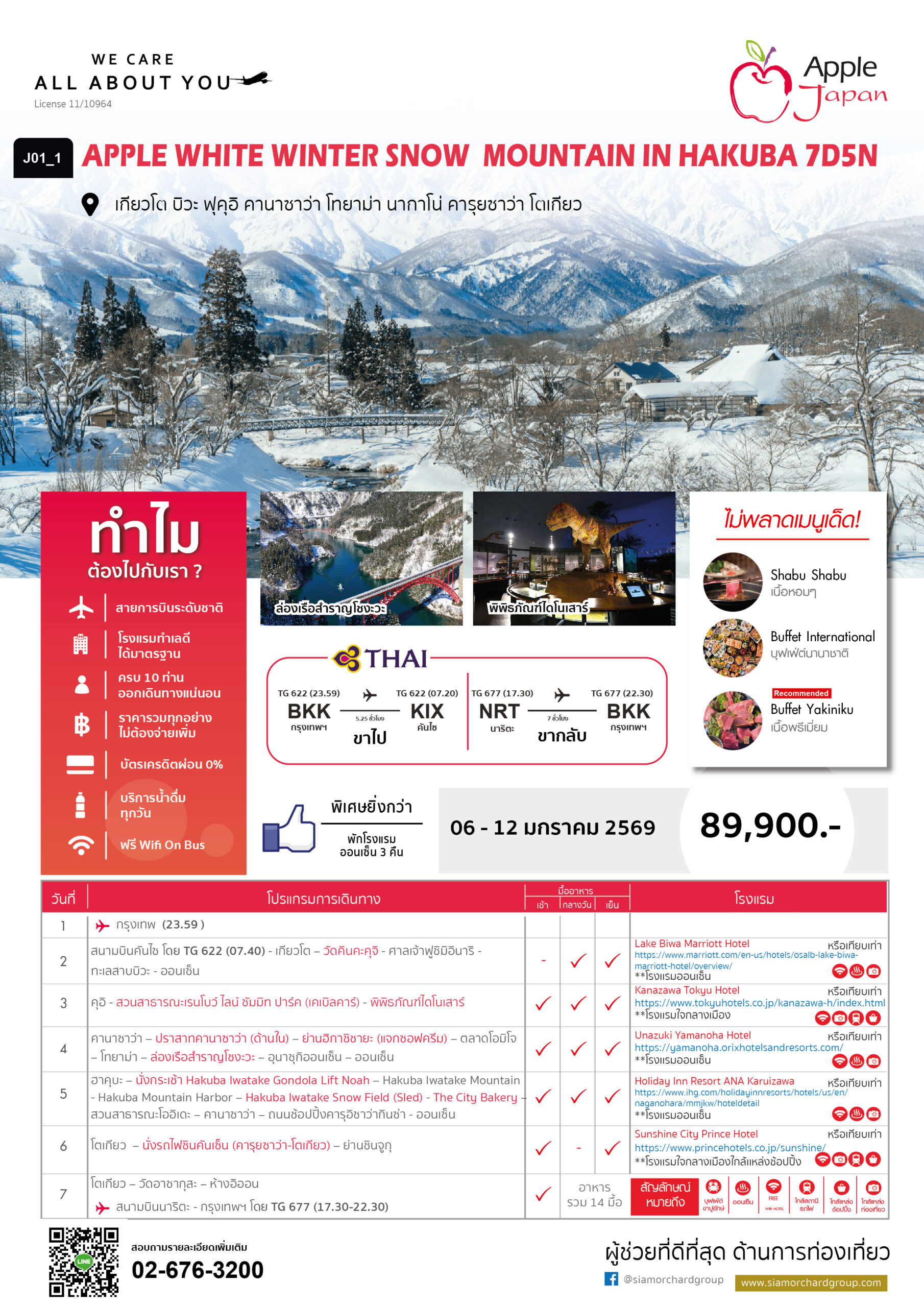ทัวร์ญี่ปุ่น เดือนมกราคม 2569 APPLE WHITE WINTER SNOW MOUNTAIN IN HAKUBA 7D5N